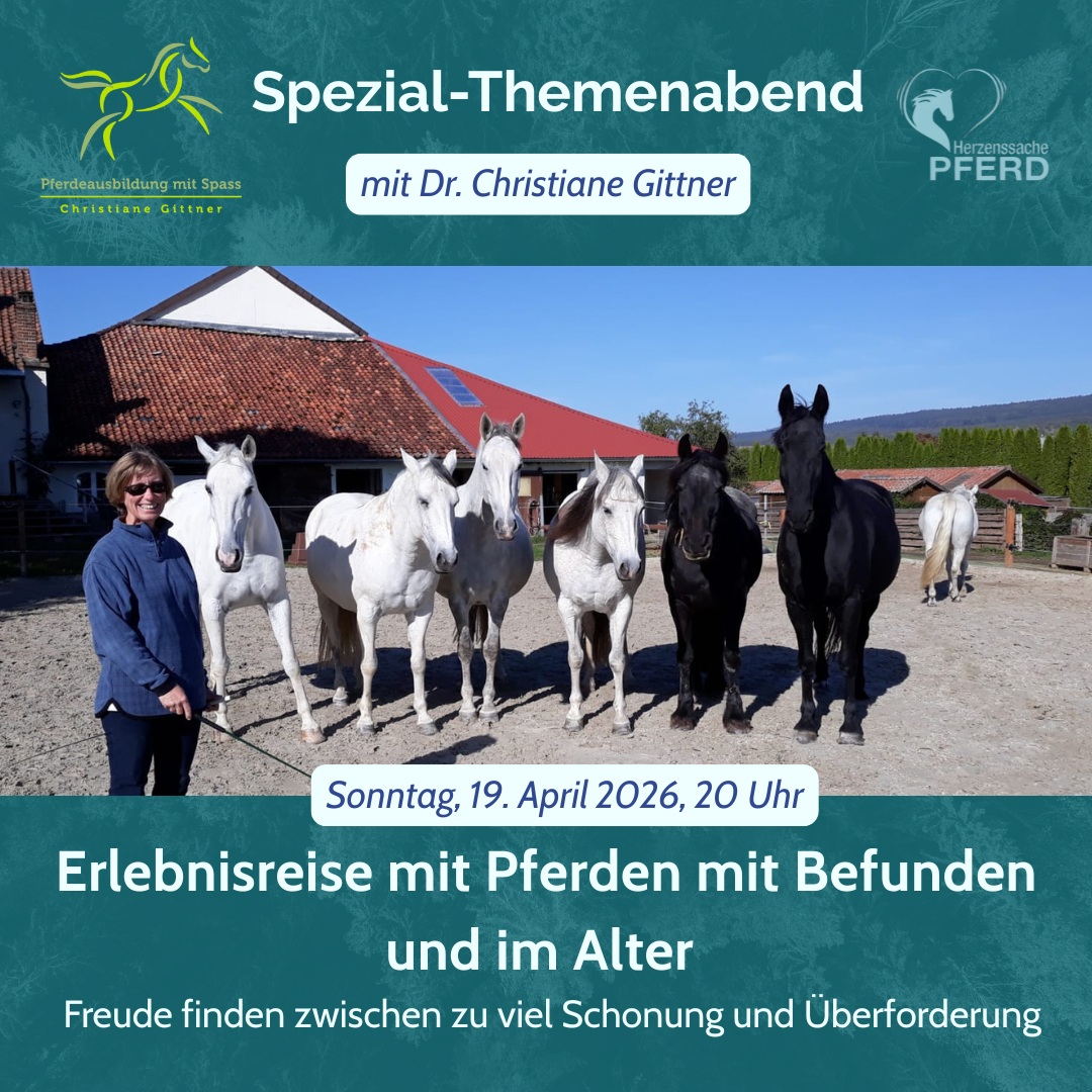 Als Alternative kannst Du Mitglied in unserer Online-Akademie werden. Dies bietet Dir nicht nur vollständigen Zugang zu diesem Themenabend, sondern auch zu über 50 weiteren spannenden Kursen & Lehrangeboten rund um das Thema Pferd.