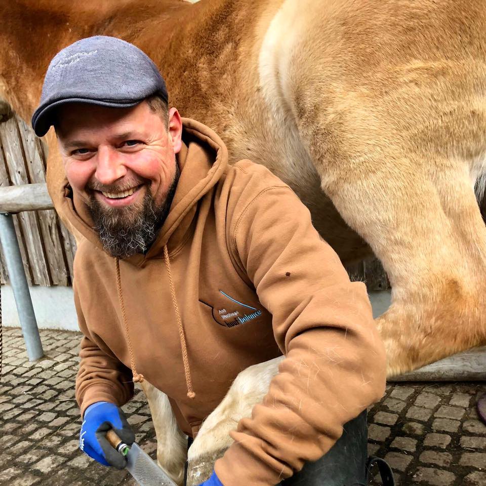 Andi Weishaupt ist seit den 1990er-Jahren mit Herz und Seele Hufschmied. Er ist mit Pferden aufgewachsen, hat in der Schweiz die Ausbildung zum qualifizierten Hufschmied durchlaufen und sich im Laufe der Jahre immer stärker auf eine pferdegerechte, natürliche Hufbalance fokussiert.